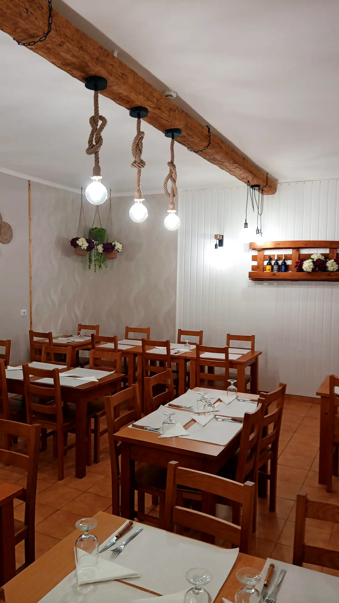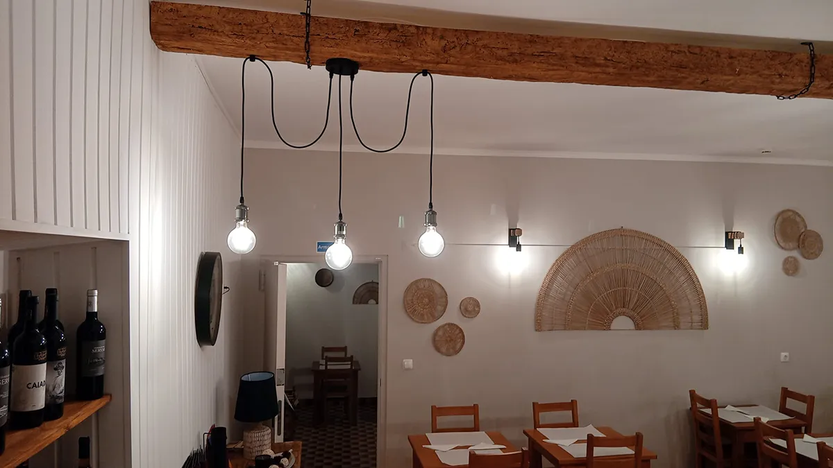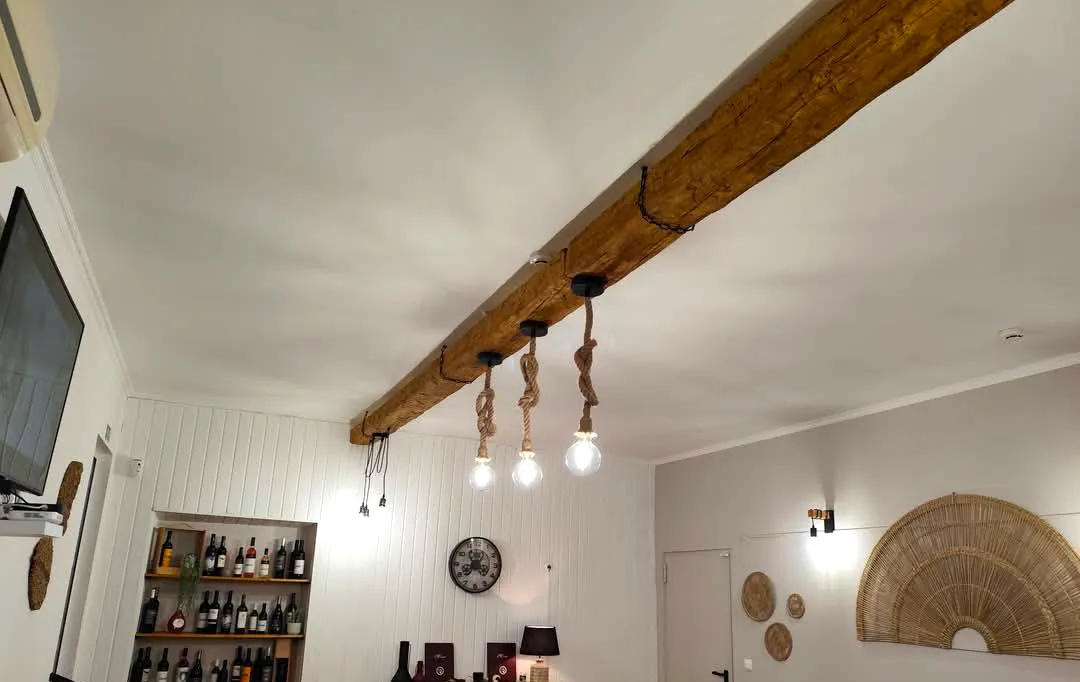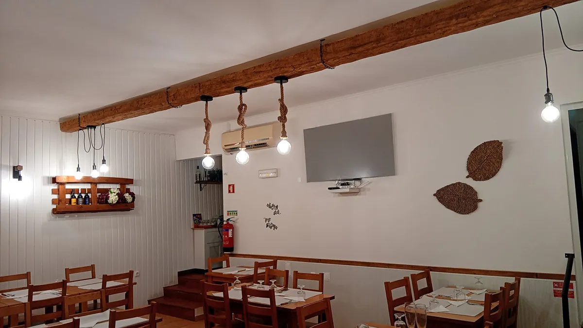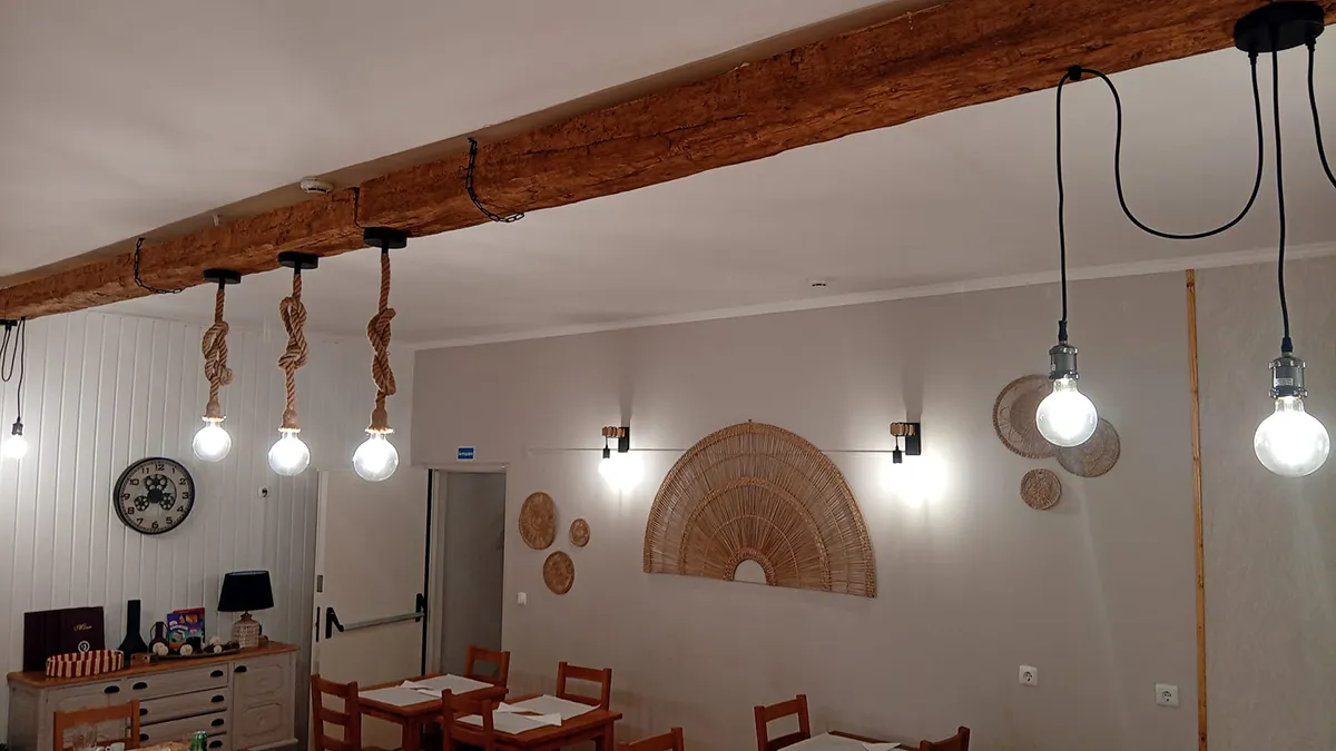 El restaurante «O Manel», en Gavião, recurrió a la Viga HOMESTAR 20×13 Moderna (Imitación de Madera Real) para crear una solución original y de gran impacto en su espacio comercial: aplicada en el techo como soporte para lámparas, ocultó los cables de forma elegante y añadió un elemento visual destacado a la decoración.