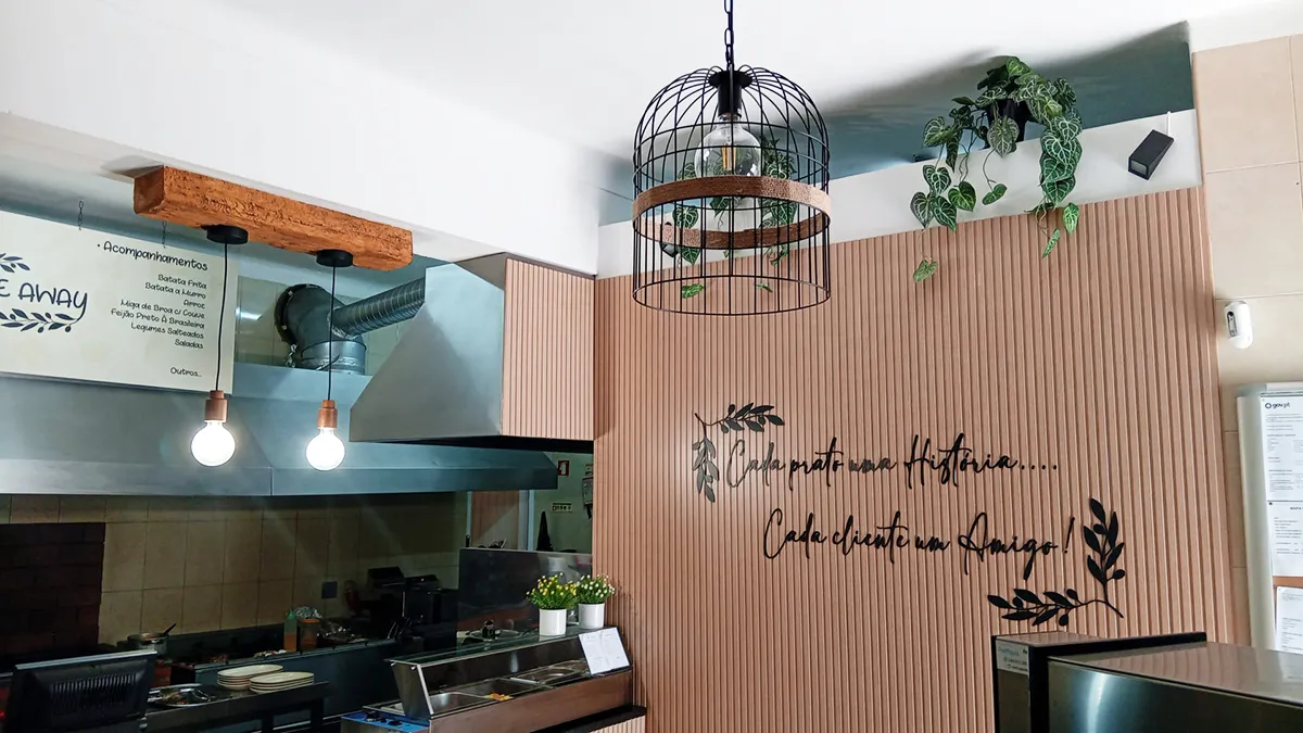 “… foto de nuestra sala de rechazos, donde la viga ocultó los cables de la iluminación y también de nuestro mostrador de take away, donde aprovechamos el excedente de la viga para colocar las lámparas. ¡Gracias! ¡Estamos muy satisfechos!…”