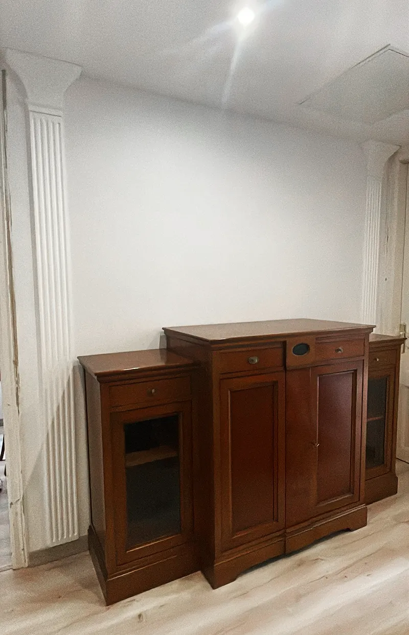 Chris aplicó la Pilastra HOMESTAR con capitel HKP15G y cuerpo HP15 en la pared, creando un equilibrio perfecto que realza el ambiente con sofisticación y armonía.