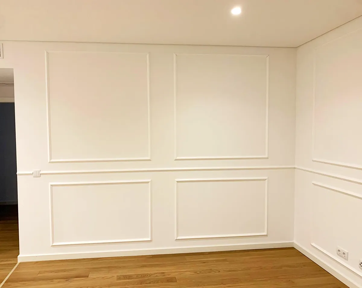 El aplicador Tou a Caminho 🚶♂️ renovó el recibidor 🚪 con los frisos CW10, aplicados al estilo Boiserie 🎨 — un diseño clásico que combina paneles decorativos sofisticados con un toque de distinción, realzando el ambiente con armonía y encanto 💫.