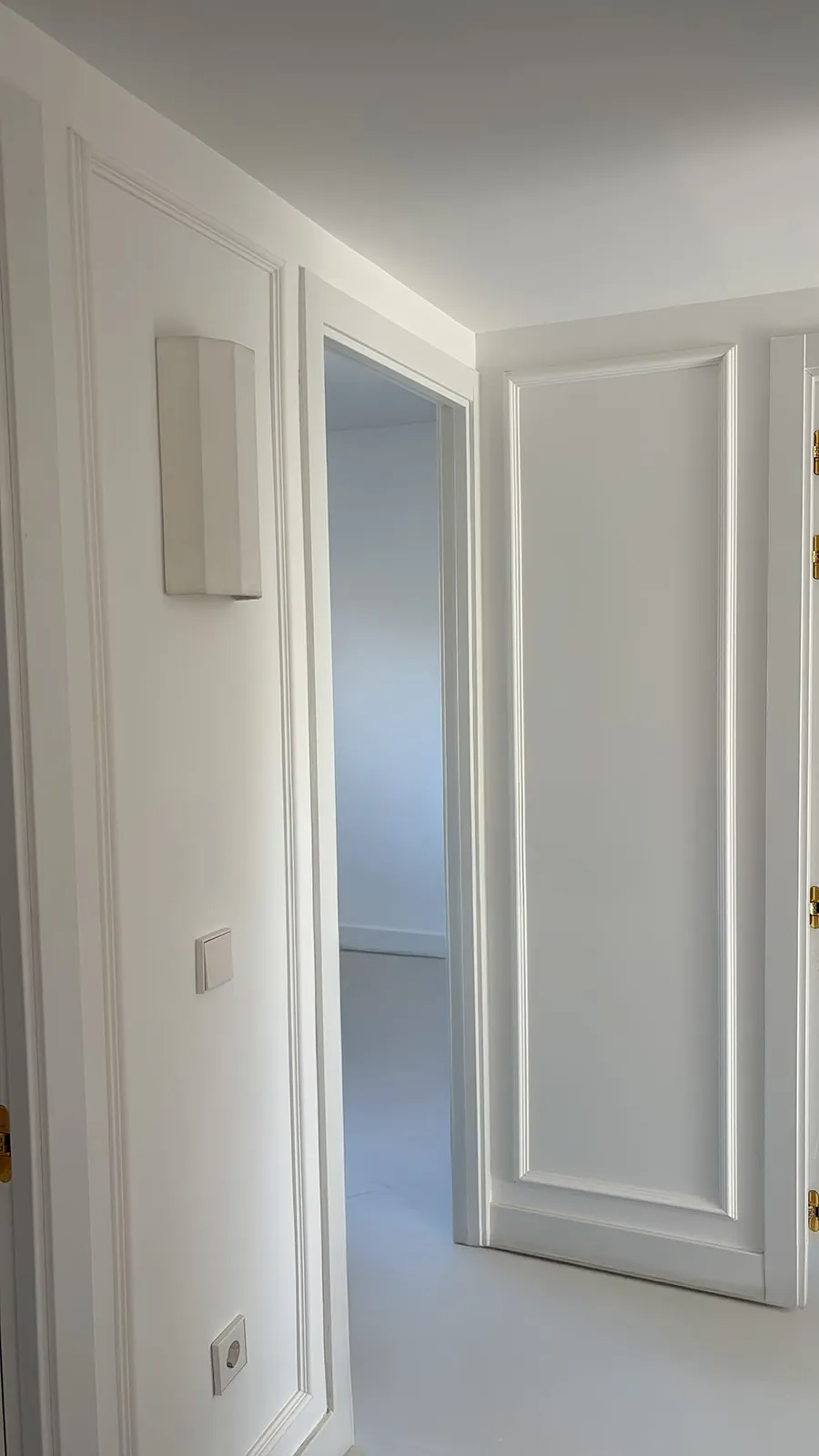 La empresa instaladora INTERVALLUM utilizó el friso HOMESTAR CW11, en poliestireno de alta densidad, para crear un elegante efecto boiserie en las paredes. Aplicado con el adhesivo HOMESTAR Multiusos, el resultado combina facilidad de instalación, resistencia y un acabado de gran impacto visual.