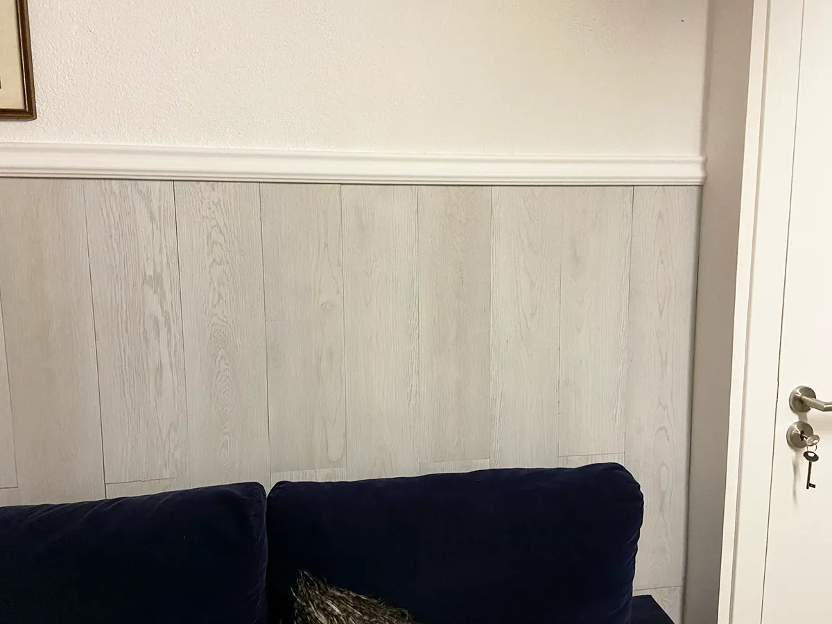 Natalina Gil utilizó el friso I60 como separador de pared, creando una división visual sutil y sofisticada.