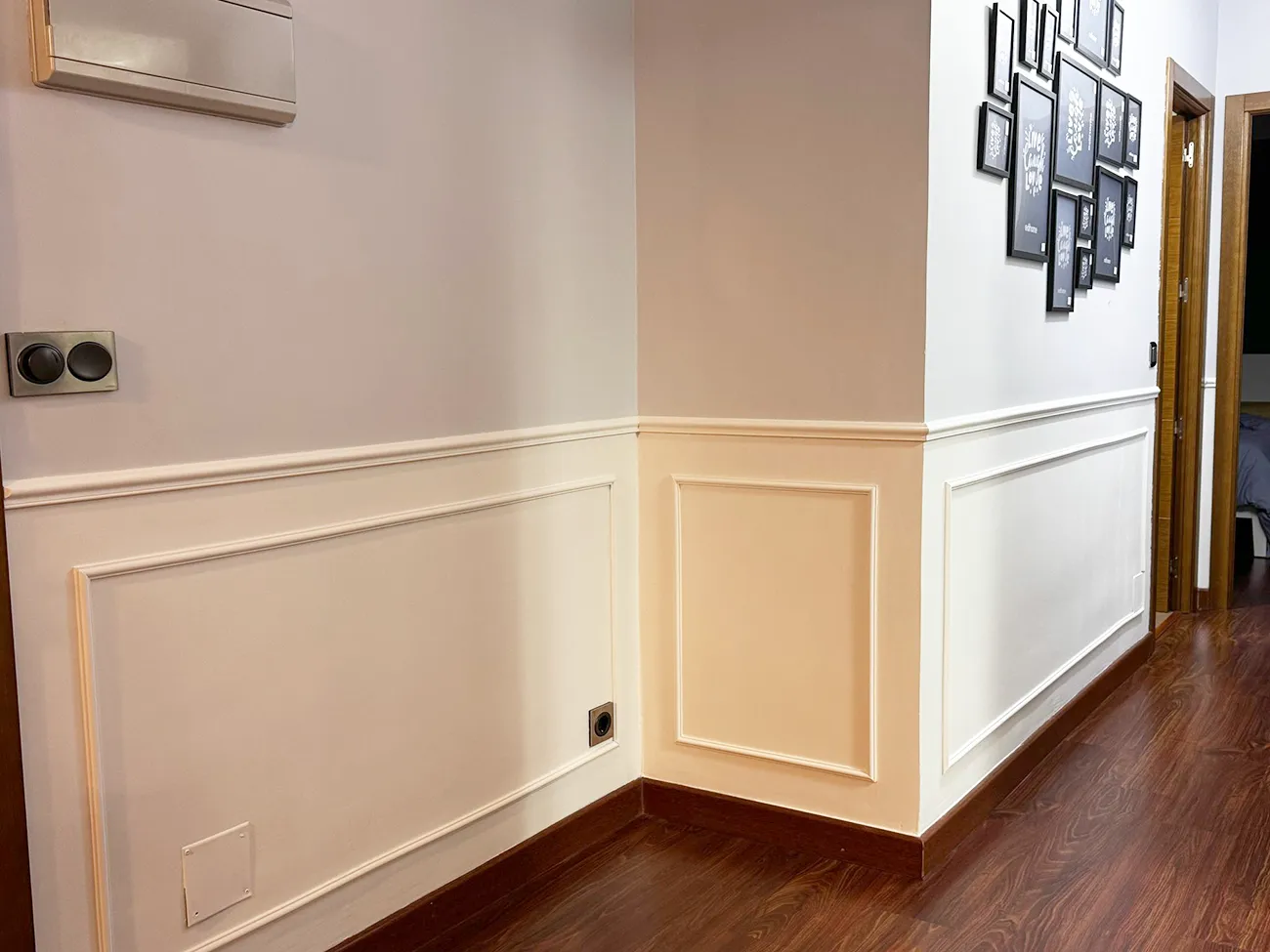 Estamos encantados de mostrar el increíble trabajo de Eugenio Alcázar, que combinó los frisos I20 y U40 para crear un elegante efecto boiserie a lo largo del pasillo, elevando el espacio con textura y profundidad. El resultado es un ambiente de paso que adquiere identidad, encanto y sofisticación.