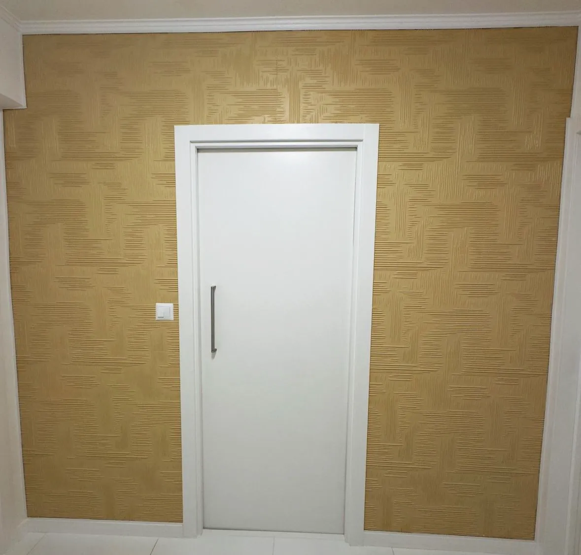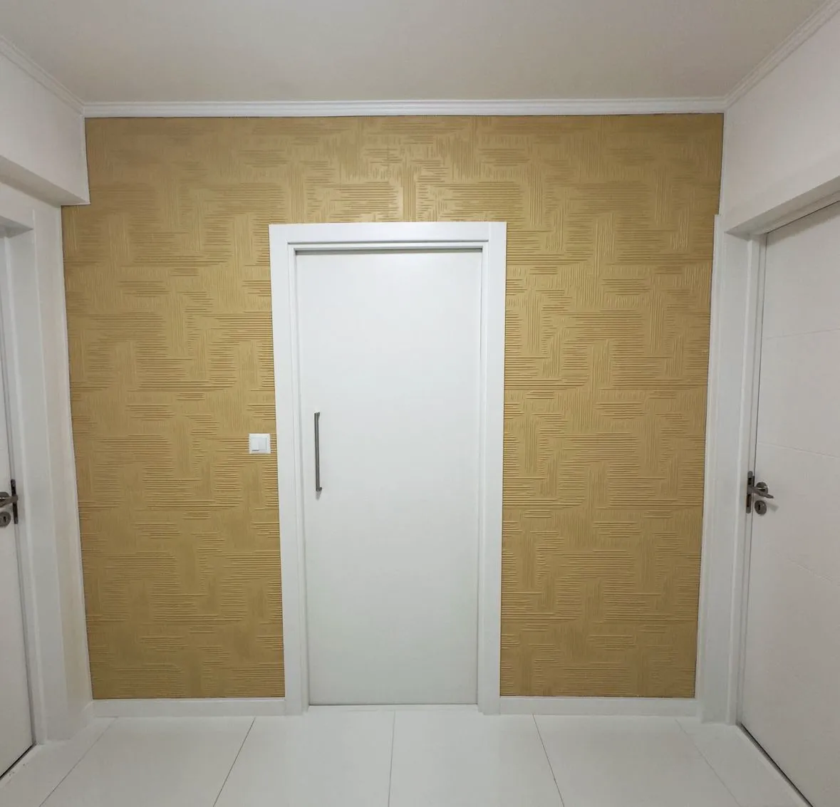 Erika Marques aplicó el revestimiento decorativo «NORMA» en la pared, que además de pintado, ofrece alta resistencia a la humedad. Una solución inteligente que une belleza, durabilidad y un acabado impecable que destaca.