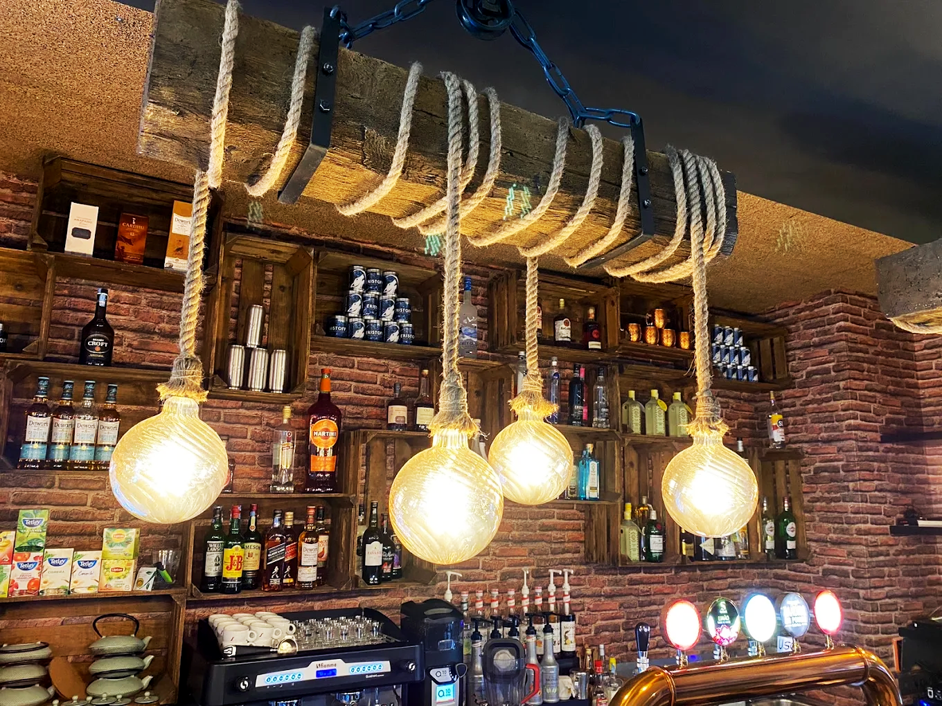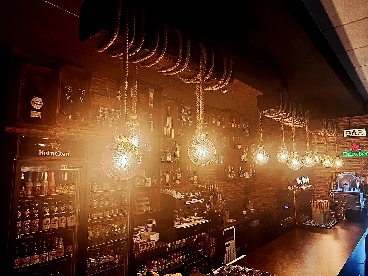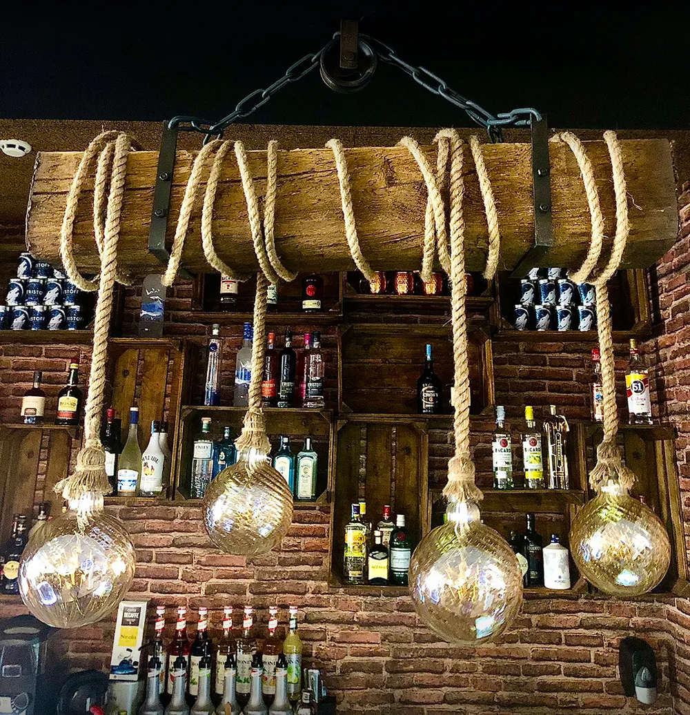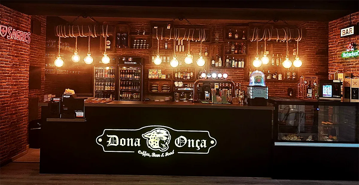 El Bar Dona Onça sorprendió con una aplicación original de la VIGA HOMESTAR 19×17 en color Rústico, utilizándola como soporte para una lámpara sobre la barra 🍷💡 — una solución funcional con gran impacto visual.